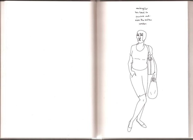 Category: Fashionistas, Sketchbook, Sketchbook Twenty Ten Tags: figures, grocery bag, handbag, Kuwait, Middle East, pen and ink, posers, project runway, sketch, the sultan center