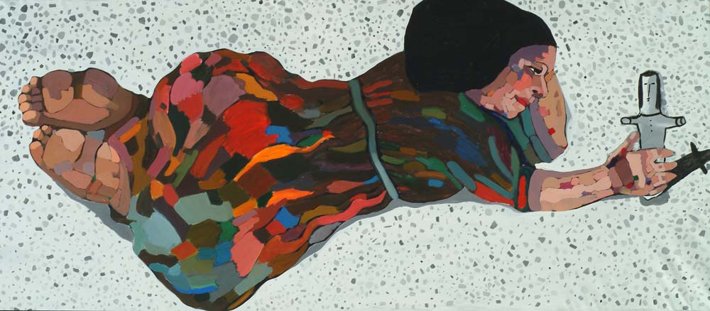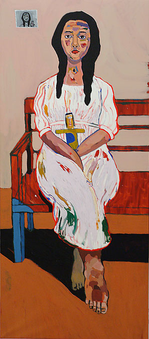 girl with doll: pregnant, 2003, acrylic on canvas, 125cm x 272cm