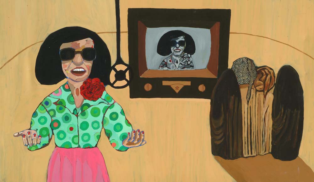 singing woman with a television, 2004, acrylic on canvas, 300cm x 180cm