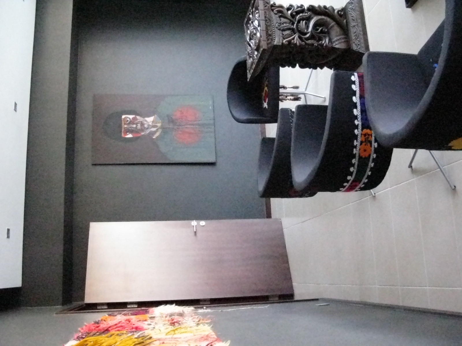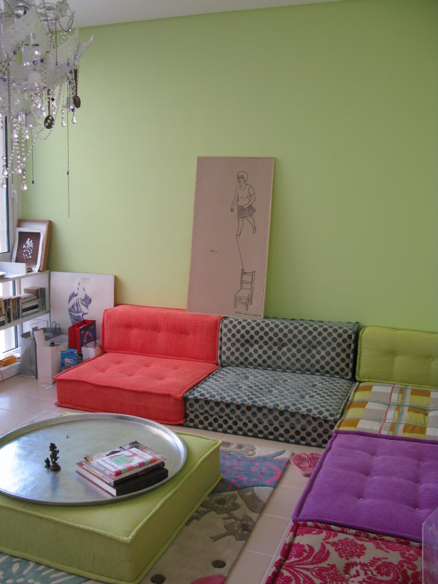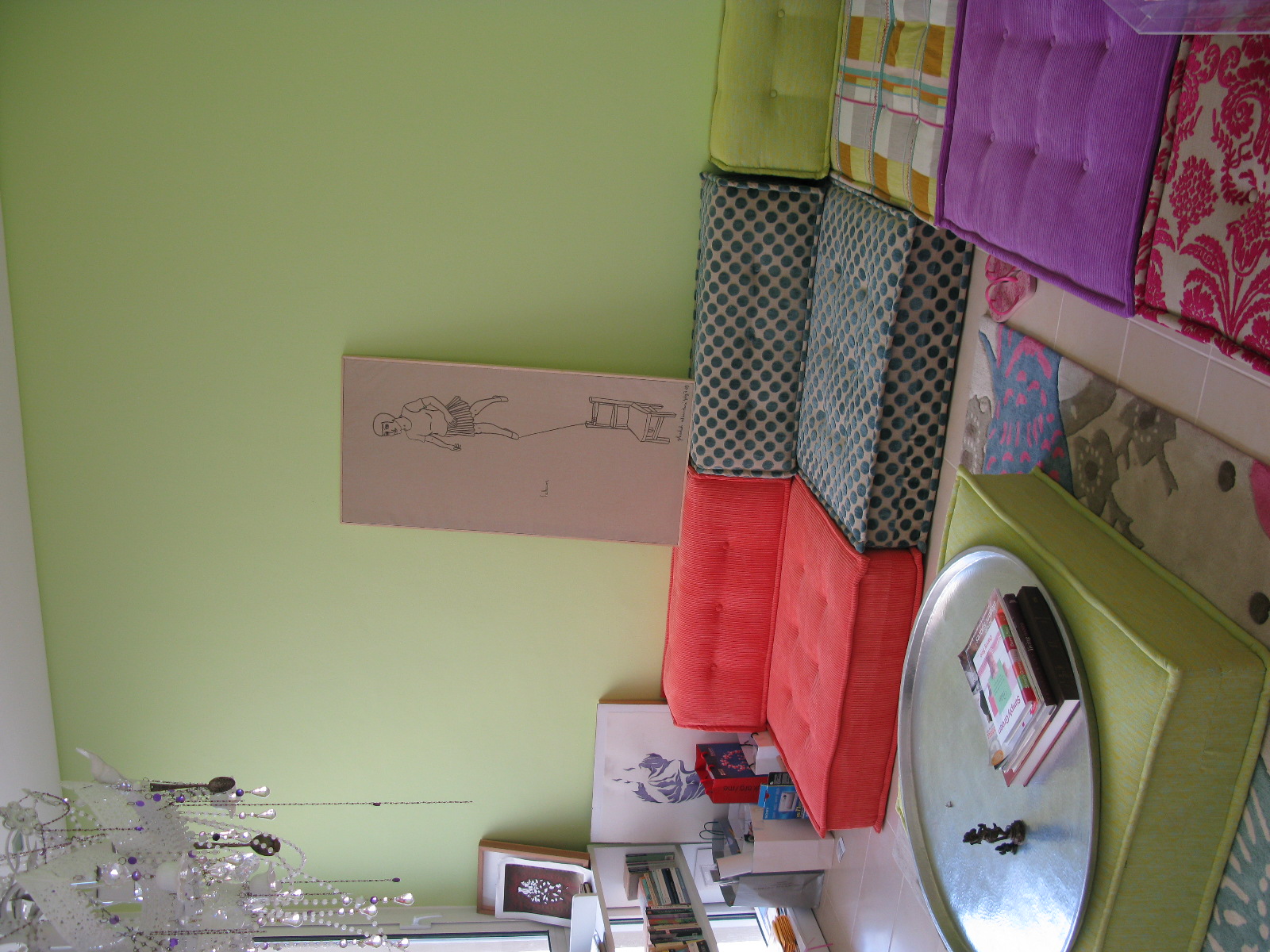 helium, 2009, charcoal on canvas. this is noor's reading room. crazy fabrics and super cosy diwaniya style lounging area make for a fitting home for my girl