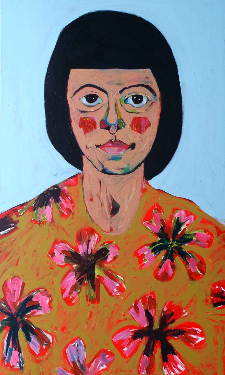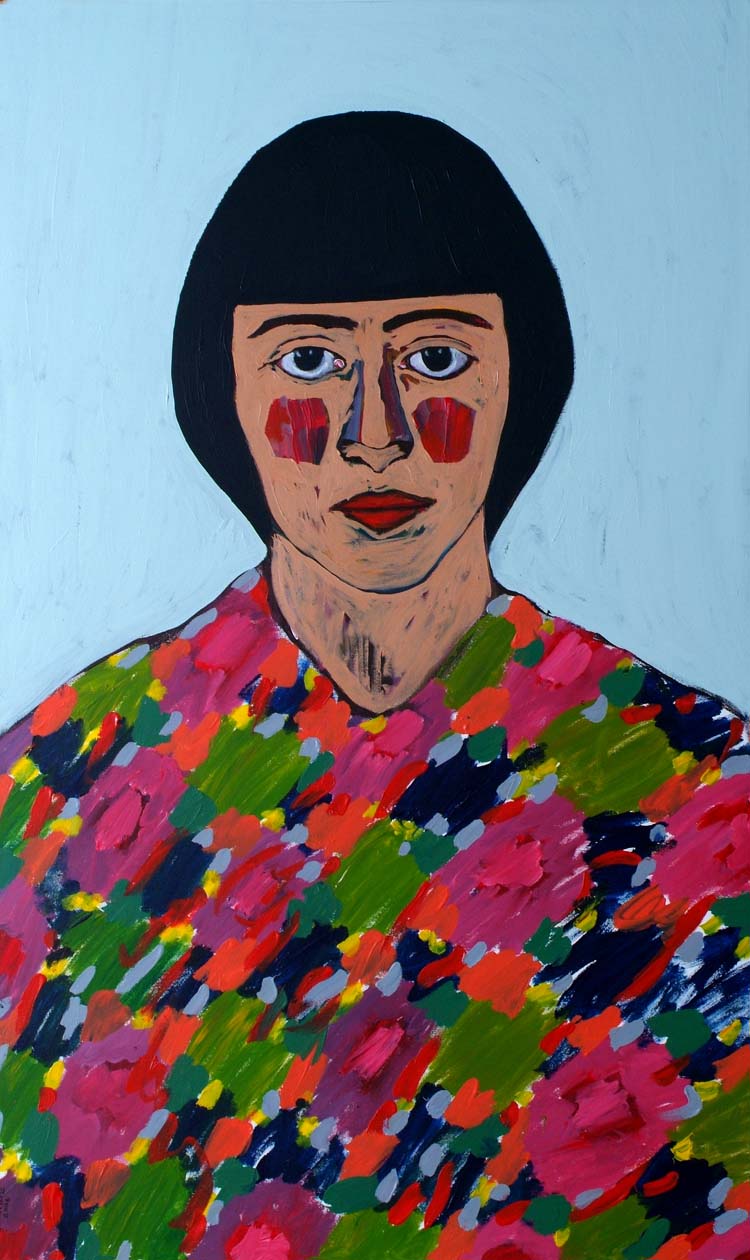 auntie with a trippy shirt, 2005, acrylic on canvas, 91cm x 152cm. she is the oldest, most domineering and feared