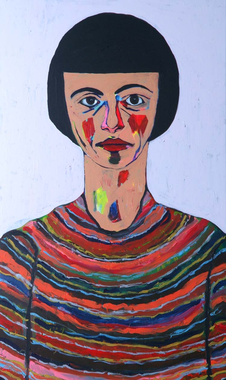This collection started with a painting I had done much earlier and stored away. It amazed me how much my style evolved the more paintings I did in this series. When I went back to the one that inspired the rest, I was shocked at how different it looked from its sisters. Nonetheless, I included it in the collection because it was an important driving force behind my 2006 exhibition at Dar Al-Funoon: Forty-Eight Women, a Kitten & Pele.