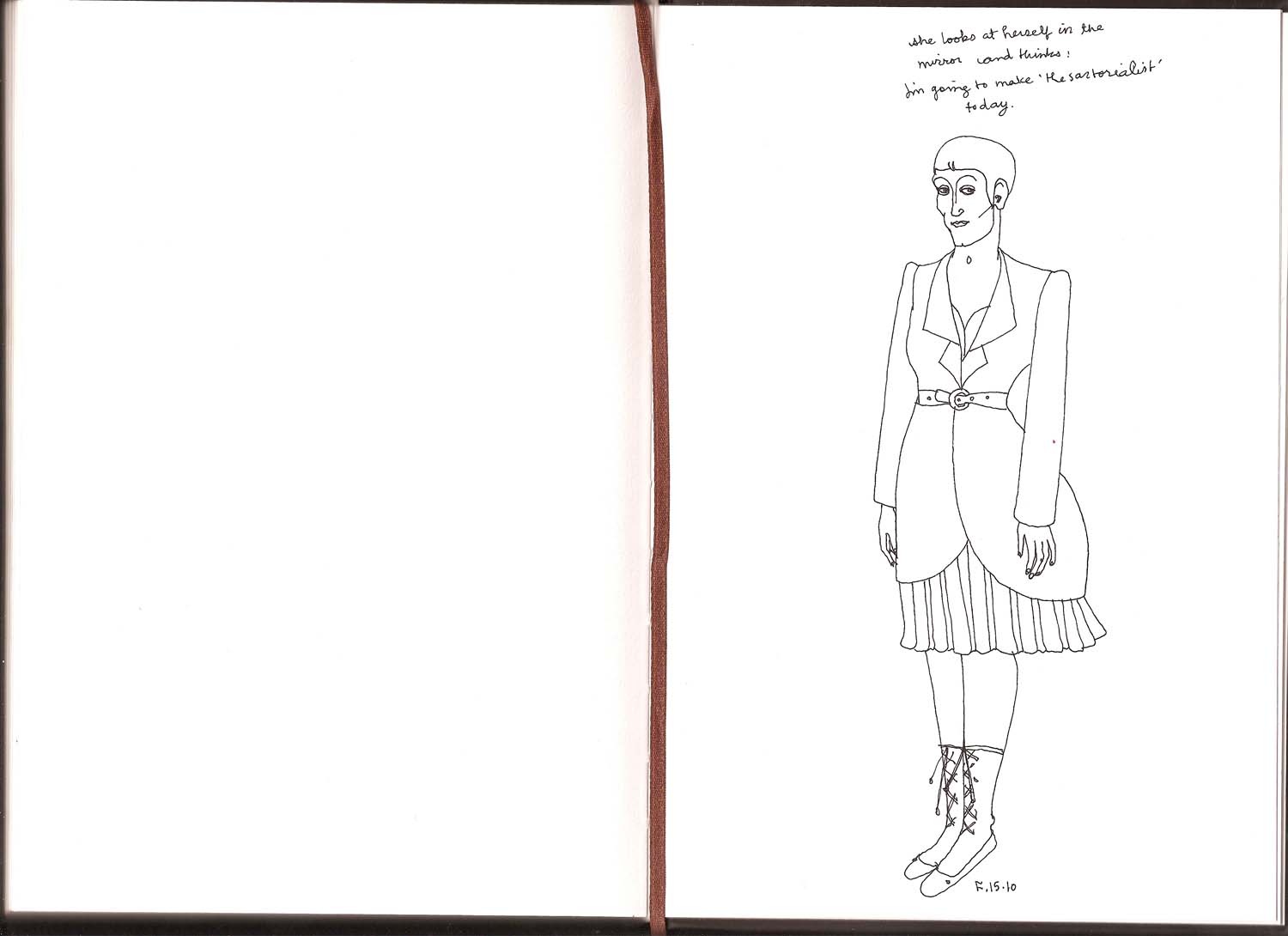 Category: Fashionistas, Sketchbook, Sketchbook Twenty Ten Tags: book, brothers grimm, chair, exercise, fashion, gretel, hansel, ink, jane fonda, Kuwait, mirror, pen, reading, Sketchbook, style, the sartorialist