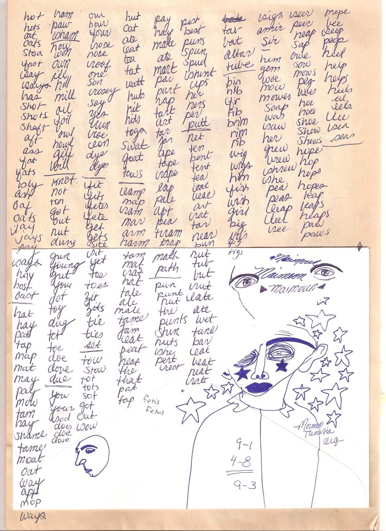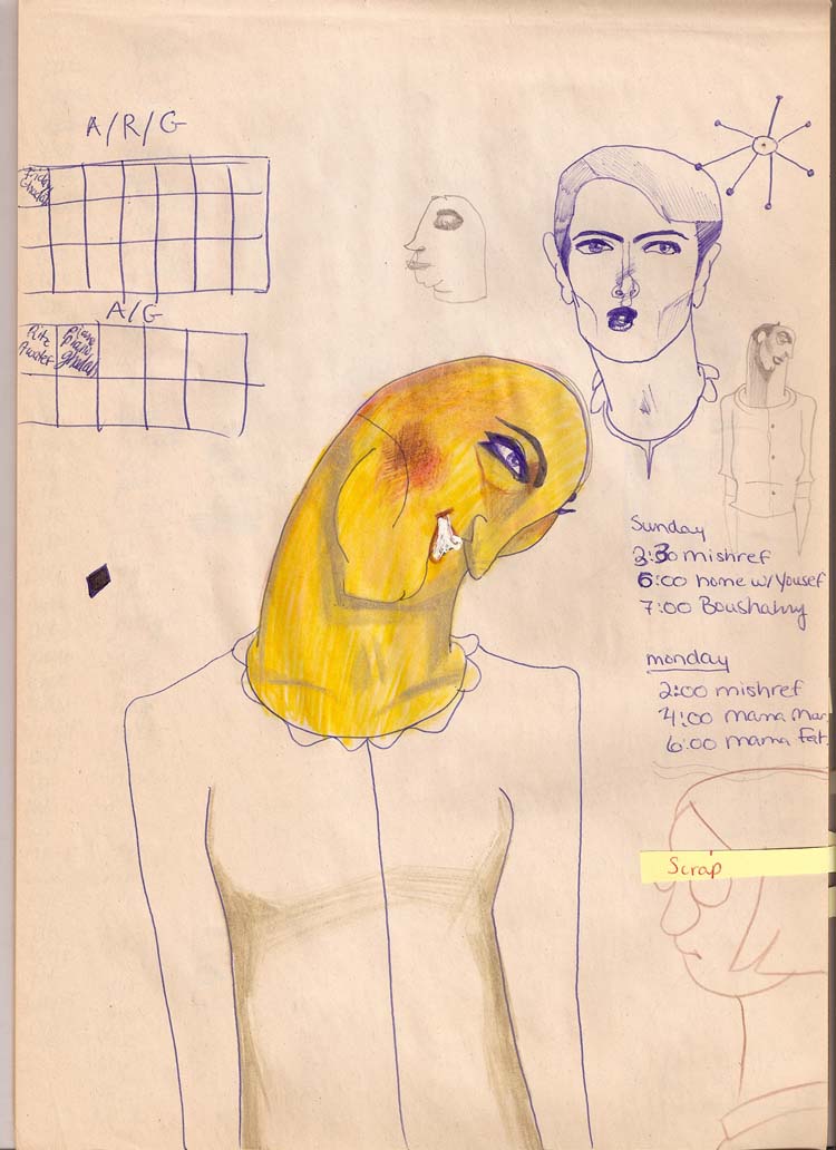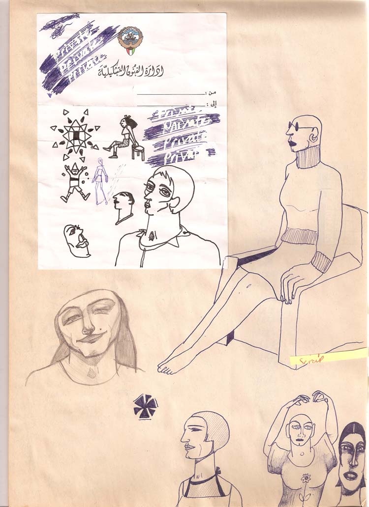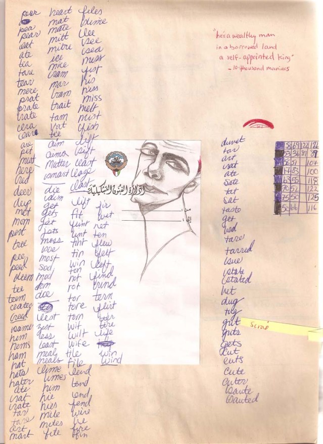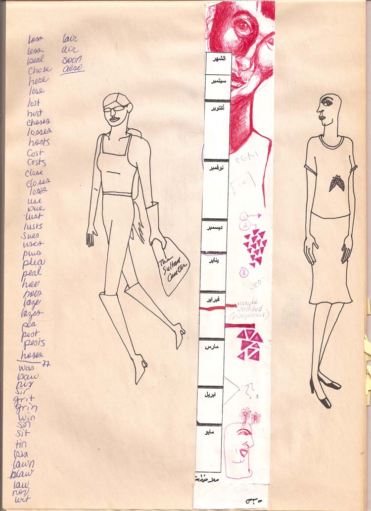 I had my own room so I could more or less do whatever I liked, and I liked drawing and writing. My journalist friend, Fatma Al-Saffar knew I had a penchant for sketchbooks so she used to bring me these wonderful writing tablets from the newspaper she was working for at the time. I also had, believe it or not, a game of boggle in my desk and I used to play it all the time. As much as I enjoyed finding and scribbling down the words, I found the visual quite pleasing as well. So these are some pages from one of the writing pads.