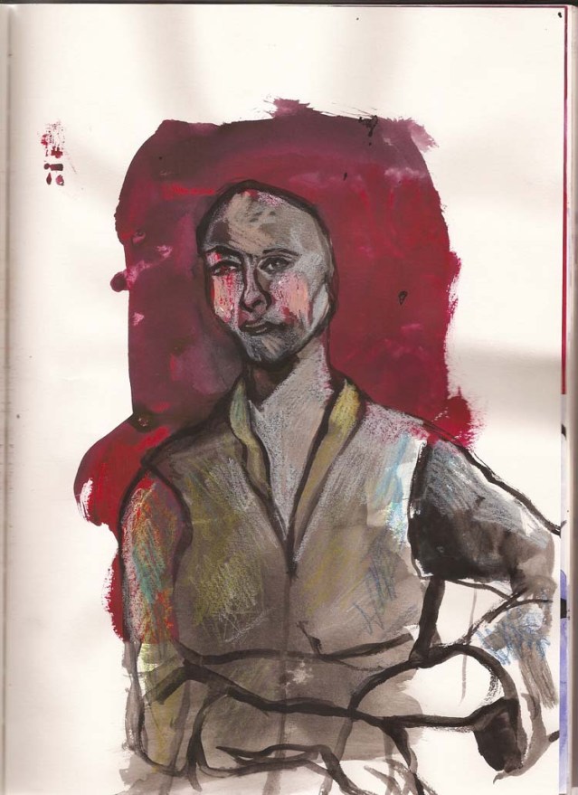 I like the woman in this drawing. I like the way she’s standing there, like she’s waiting for an explanation. Her reaction to it will render the explainer weak-kneed and speechless. I want to be like her, and I want to be able to carry off a man’s shirt like she does.