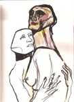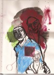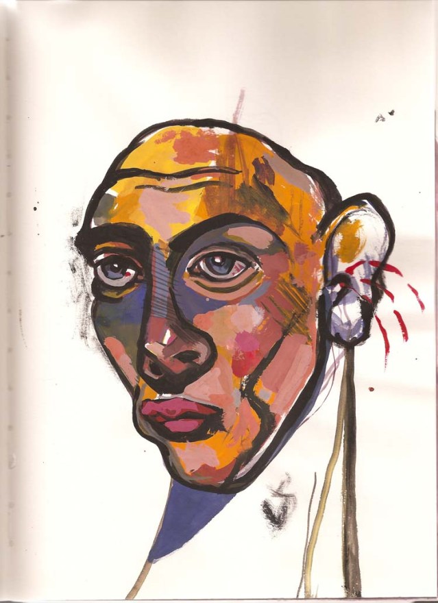 A few years ago I bought a sketchbook. At the time I couldn’t find these sketchbooks in Kuwait so would buy them in Europe or the States. It was always special when I bought a new one and I took very good care that the books were themed by medium and state of mind. This particular sketchbook was very emo-oriented as opposed to being whimsical like my other ones. I think most of it was filled using Japanese poster paints. The book itself has a very antique, rugged feel to it, like it had been left out in the rain and sun. I haven’t filled all the pages yet, but I hope to some day.