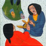 two girls and three beetles, 2003, acrylic on canvas, 185cm x 200cm