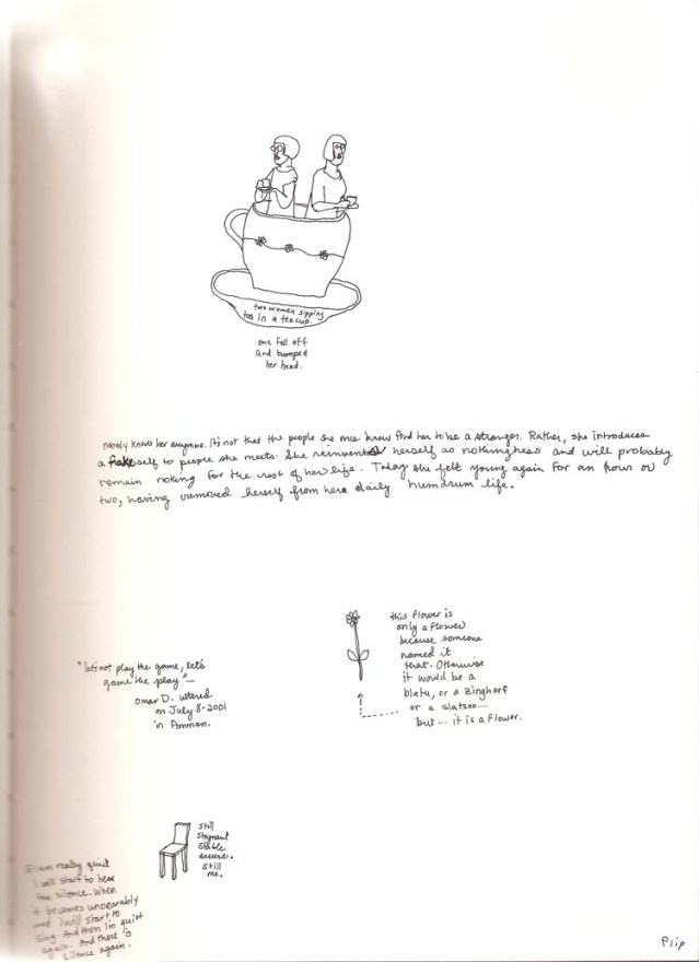 the first sketch reminds me of the three men in a tub. i remember our librarian in the third grade showing us an illustration of the men in the tub and i thought: they look so damn safe and cozy. i’ve always liked photos or pictures of people in some kind of moving vehicle, snuggled within its confines, safe from the vicious world outside. i used to put my little dolls in a shoebox. the ultimate scenario was that they were lost at sea and the shoebox kept them safe and cozy. i would shudder with excitement at how snuggled up they looked. i still do.
