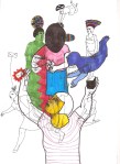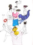 well, it’s very free associative, isn’t it? and that’s allowing our minds to wander beyond the walls that constrain our ‘logical’ thought. the most difficult thing is to numb your brain in order to paint or draw freely. that’s why children are the best artists; they haven’t yet developed the rules and the inhibitions which regiment their minds.