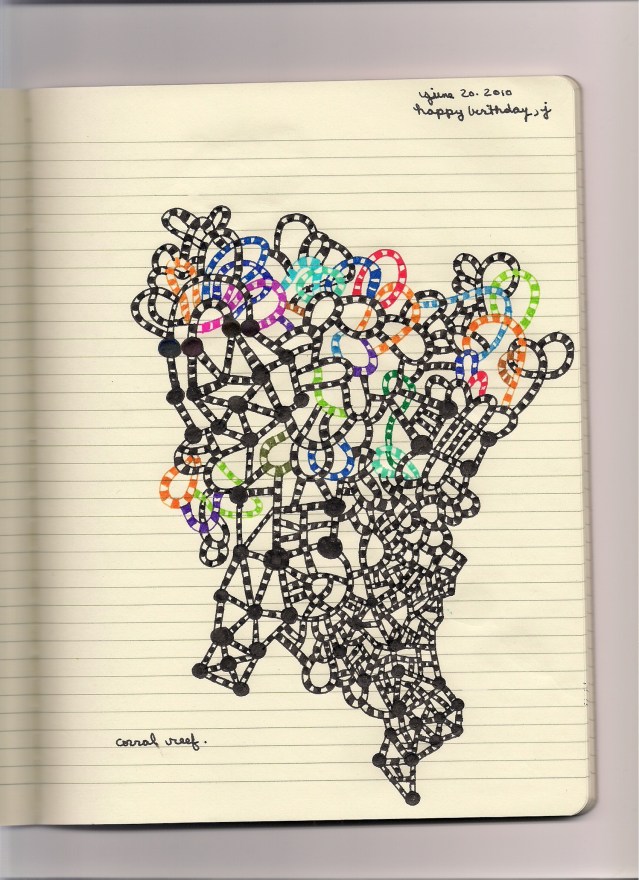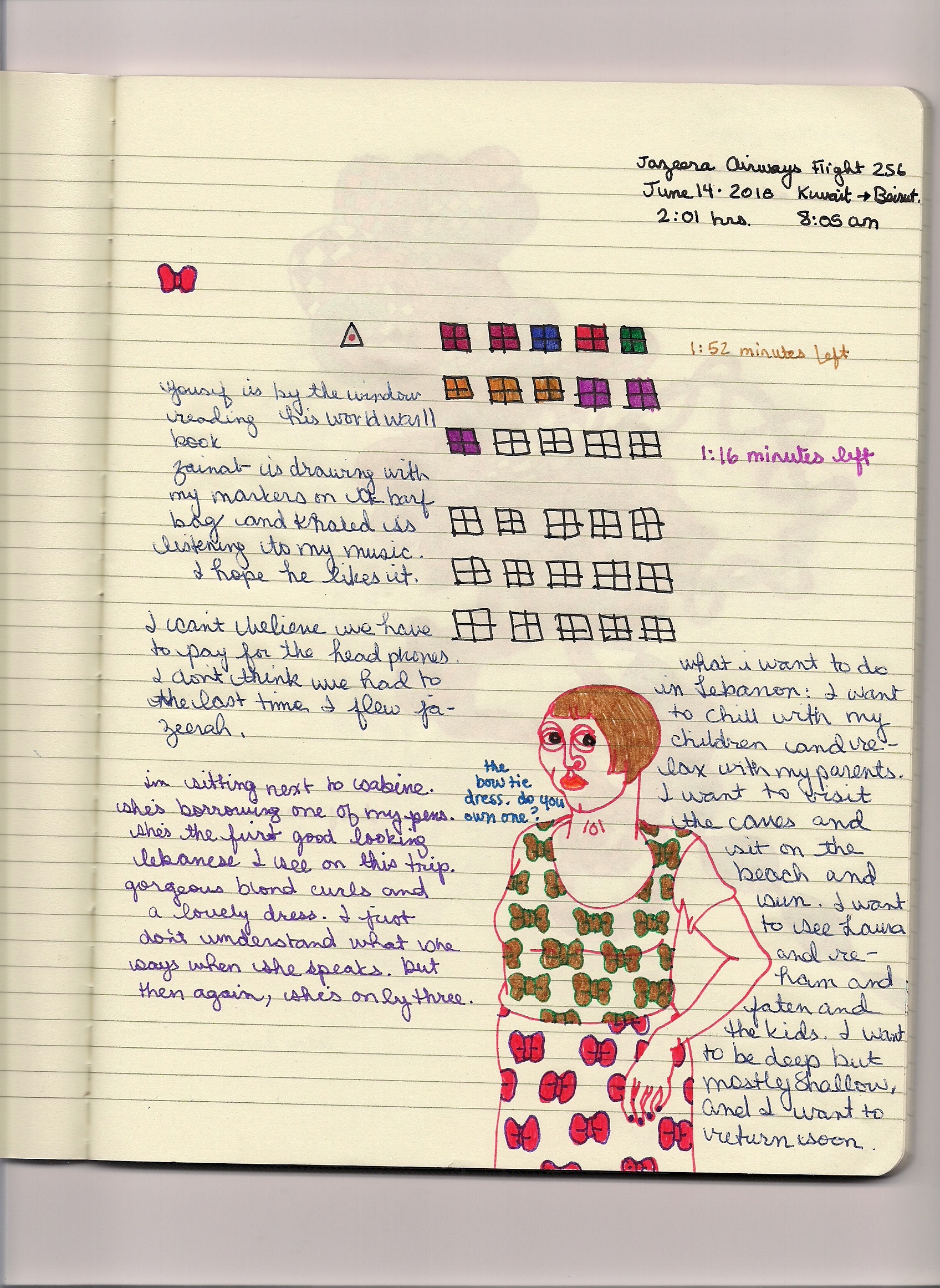 I finally ventured into my dad’s printing/scanning/uploading system and it all worked smoothly and now I’m a happy girl again. I feel so liberated. This trip to Beirut from Kuwait was quite swift and uneventful. Two hours and five minutes, an ideal time for any trip 35,000 feet up in the air. I’ve also sneaked in two ‘meditative’ drawings I did during my time here in Beirut. I got a little help by my daughter coloring in Seafood.