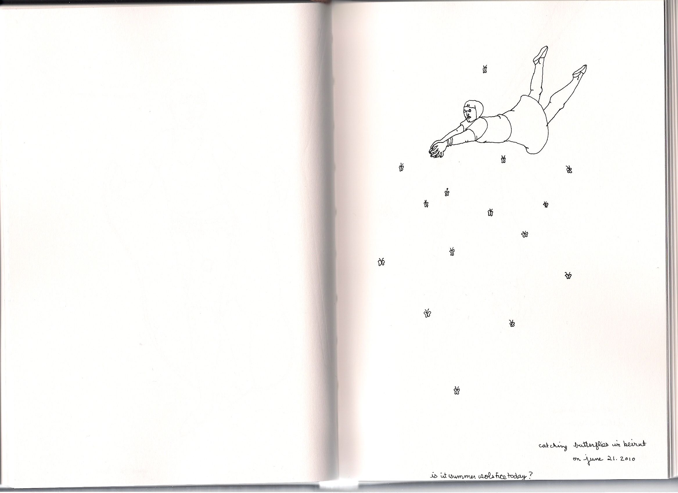 Category: Sketchbook, Sketchbook Twenty Ten Two Tags: 2010, beirut, butterflies, drown, ink, Kuwait, pain, pen, sketch, Sketchbook, water