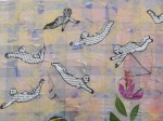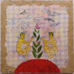 the two eves & their bees, 2010, collage on fabric, 50cm x 50cm