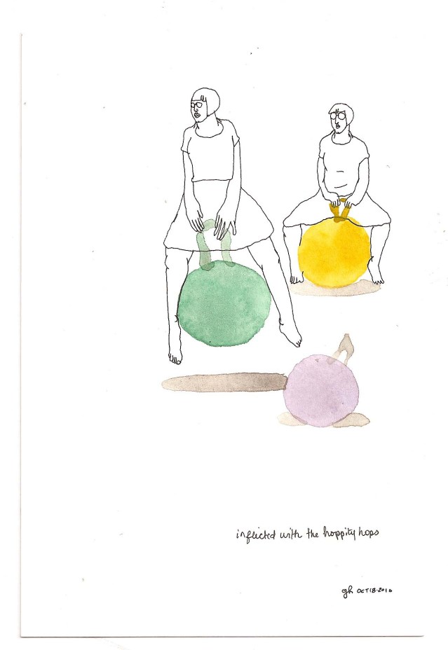 Category: Postcards, Watercolor Tags: bouncy ball, hoppity hop, ink, Kuwait, postcard, space hopper, watercolor