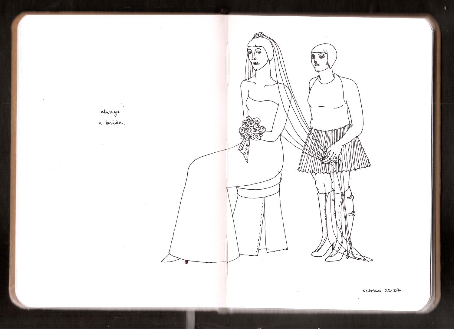 Category: Derwent Journal, Sketchbook Tags: bride, derwent, ink, journal, Kuwait, Sketchbook, unhappiness