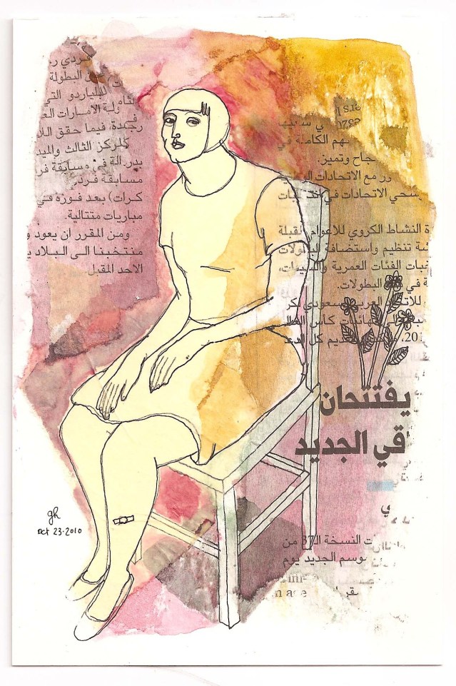 Category: Cut & Paste, Postcards, Watercolor Tags: collage, ink, Kuwait, newspaper, postcard, watercolor