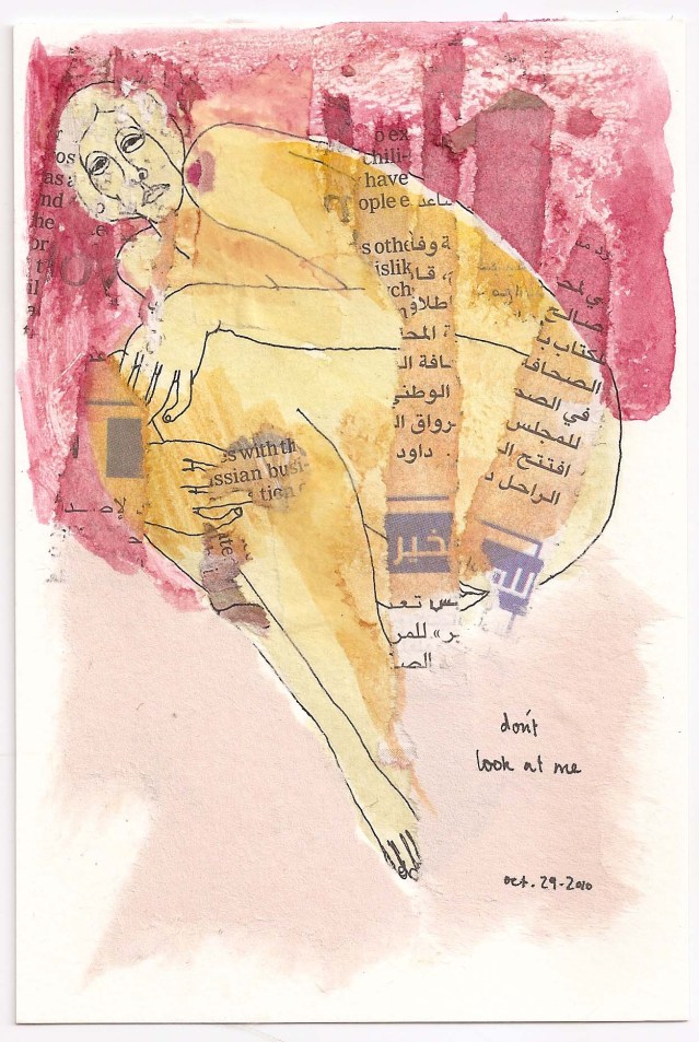 Category: Cut & Paste, Postcards, Watercolor Tags: collage, ink, Kuwait, naked, newspaper, nude, postcard, watercolor