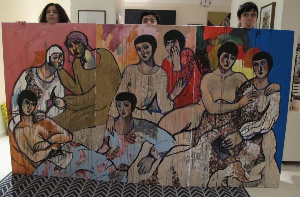 zainab almost fell off the chair too. and yousef had just bumped his head on the wall (don’t know how it happened, but thank god he didn’t go through the painting). i want to be done with the painting soon. paneled works are very difficult both logistically and psychologically. i need to get myself some gigantic canvases stat.