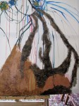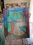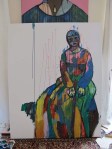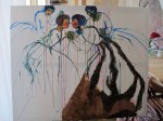 I often work on several canvases at a time. This is for several reasons, only two of which I remember at the top of my head: first of all, economic reasons. One of my least favorite things about the acrylic medium (which is also one of my favorite things about it) is its rapid dryness factor. When I have more than one canvas at  my disposal, I like to use whatever paint left over from one painting onto another. It saves time and paint and is all ’round more efficient. The second reason I like working on more than one painting is that I need to take a mental and physical break from one and start or resume work on another. I think I have a relatively short attention span (or a huge penchant for multi-tasking, I don’t know…). And this is why.