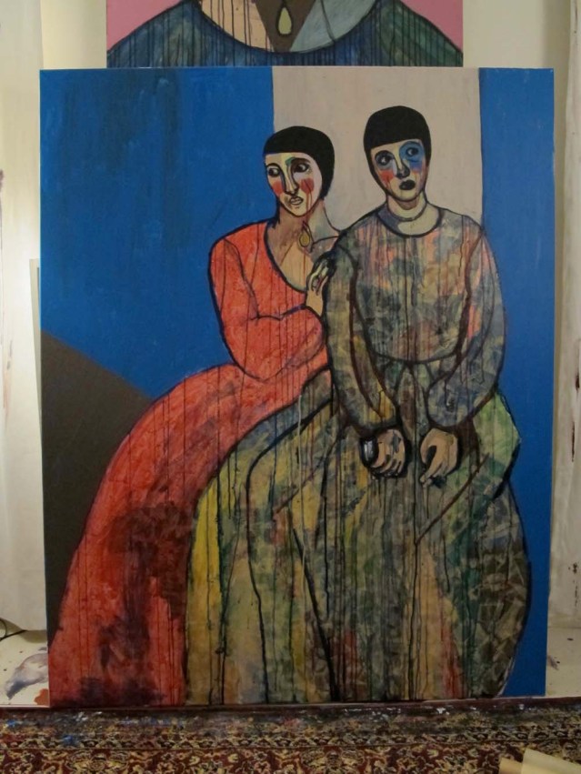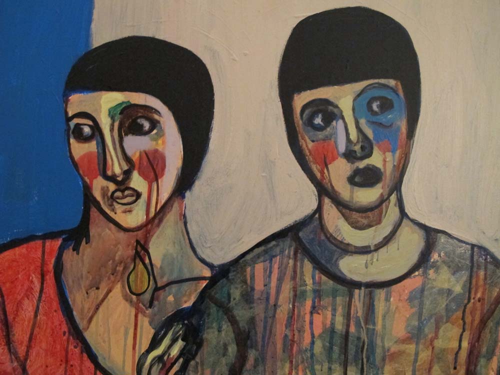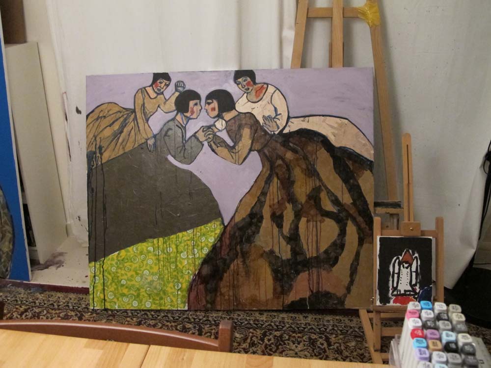 a little later in the night, they have hair. i think i'll be done with this painting tomorrow. i have to be