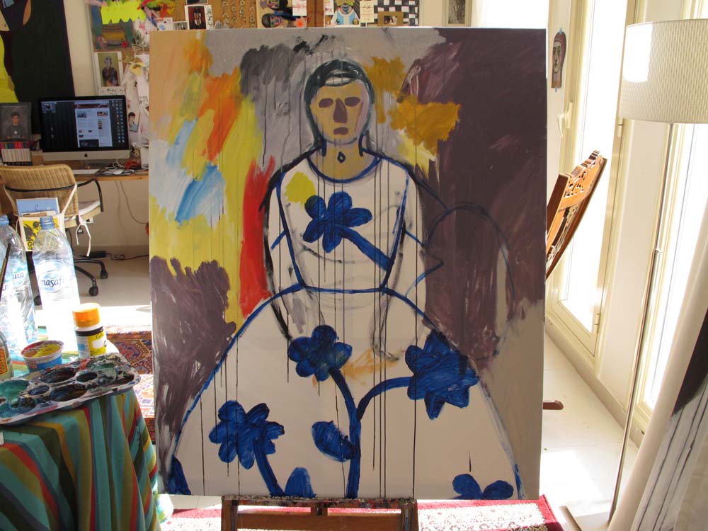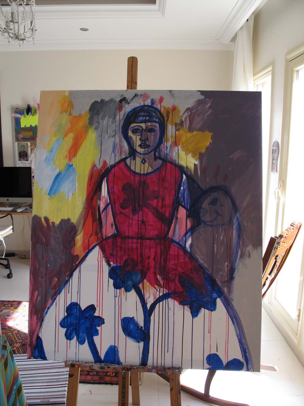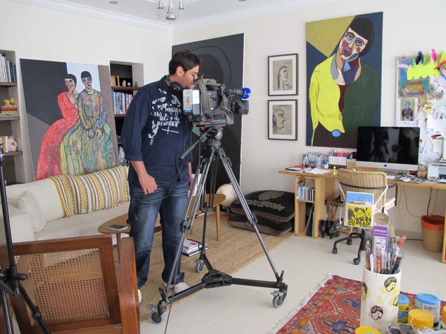 I was visited this morning by the Kuwait Television crew (Rashed Bader, Amani Al-Enezy, Ahmed Al-Mutairy and Abdulaziz Alhadad), who came in to film a segment for a new variety show to air next year. I was quite nervous because I had to talk about my work in Arabic, and unfortunately I’m not too familiar with the whole art jargon in any other language but English. The whole process took around two hours, and I was surprisingly easy with painting for film (I’ve done it before but that was me filming me).