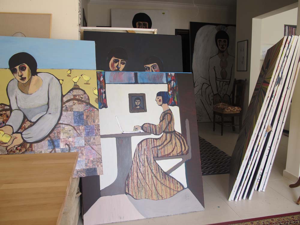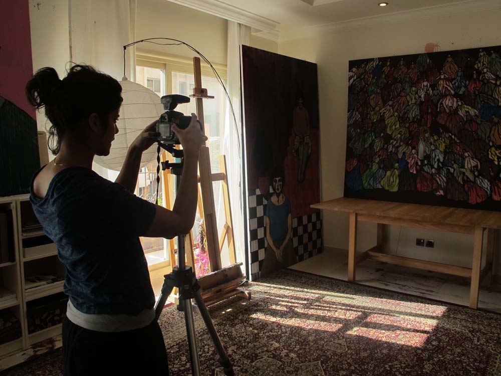 Jana came in this morning to photograph the complete Stories of Eves collection. I tried to set up the studio the best way I could to achieve maximum efficiency. I love to feel that I can win over time, so I’m always finding ways to reduce it. So much that I think I can be a little annoying. Jana and I worked like a machine and I am so happy with the results. The photos do my paintings justice. Thank you, J!