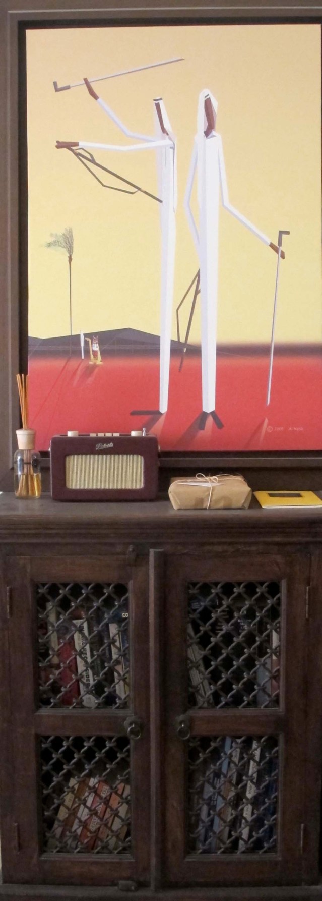 This is highly unconventional! But not surprising as it has been sent to me by my very eccentric friend Ethel Cooper, who bought my piece from the PrettyGreenBullet|The Exhibition show back in November. It took me a few seconds to figure out where it was. When I finally did, I realized that the framed watercolor and ink postcard is still in its parcel paper wrap. She said that since it was delivered, she has been saving opening it until the time is right. I’m actually glad she hasn’t opened it yet, it’s nice to know that my hard work wrapping it hasn’t been in vain. I do hope the time is right for you soon, though, dear Ethel.