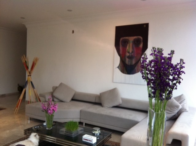 This painting was very impersonally titled ‘eleven‘. It was part of my Yellow Tape Portrait collection. Thanks to Ghena El Hariri, she has a home and a name now: Sophie. What more can anyone ask for? About the placement of this painting, Ghena said, ‘Finally I managed to send you a photo of Sophie “fi sidr el dar”! Couldn’t cover up the AC shaft opening. We didn’t hang the AC for fear of Sophie catching cold”. Sophie, you are in a good home. Congratulations!