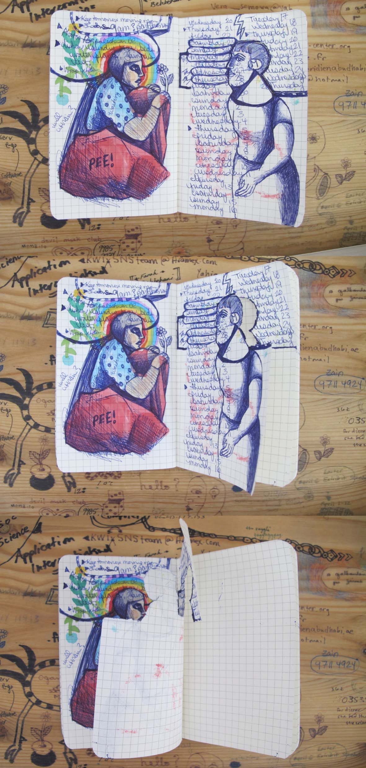 the other day i was waiting outside the school for my children to be let out. i got there half an hour early and thought i'd get my notebook out and write a list of things i had to do. my list was complete in two minutes. so naturally i started sketching. i didn't realize how many times i was going over the same lines until my pen tore through the paper and i thought: how cool! that kept me busy for the rest of my wait. simple minds, simple pleasures