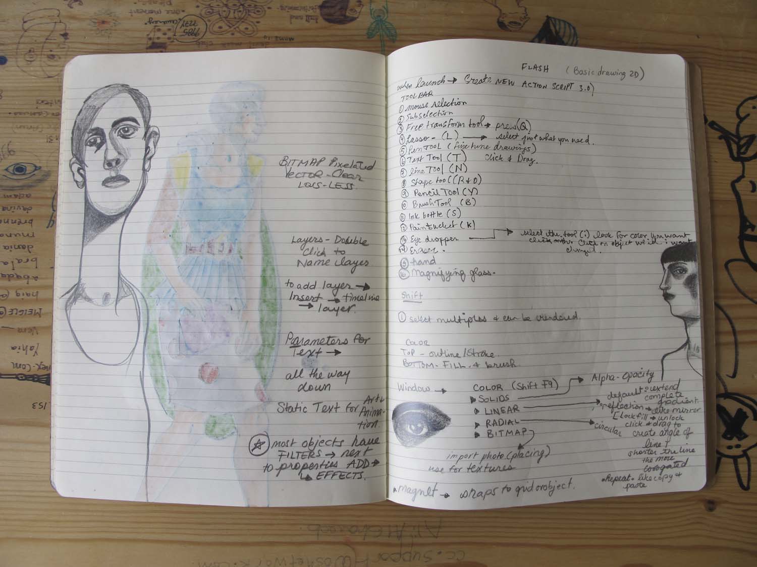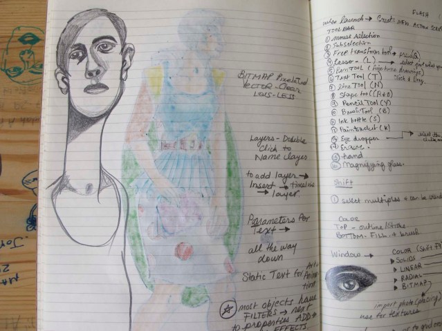 My son is teaching me how to use Flash. It bothered him slightly that I was doodling, but he does the same at school. I’m very excited about my lessons.