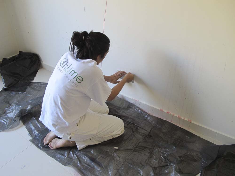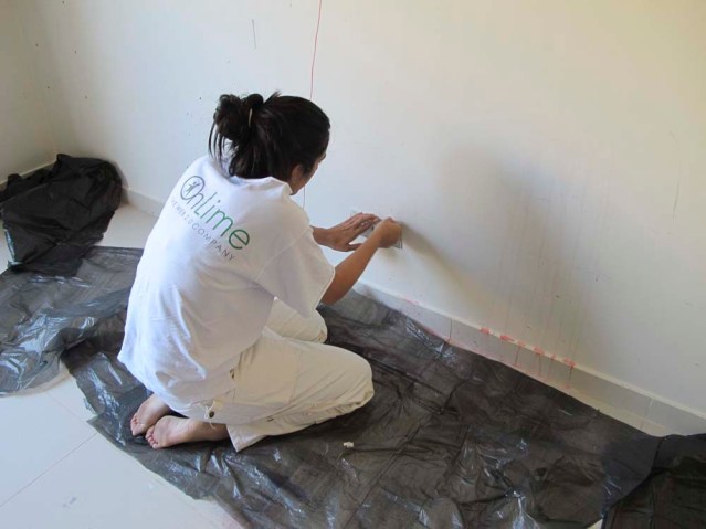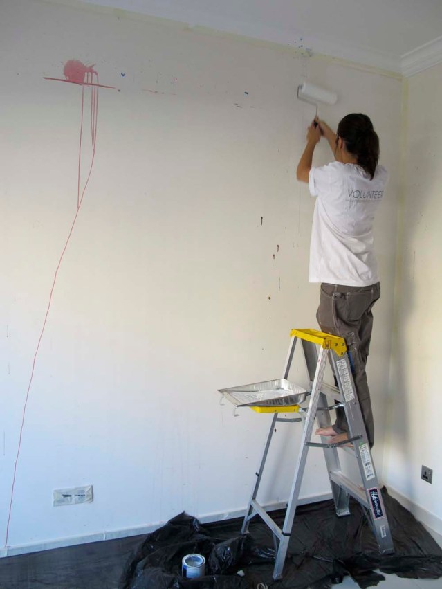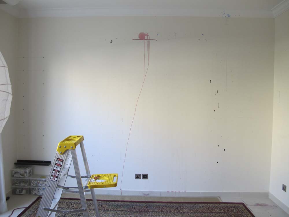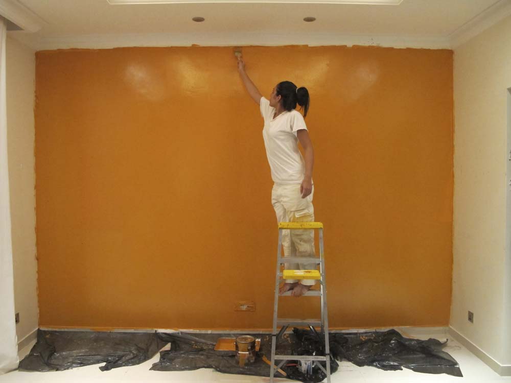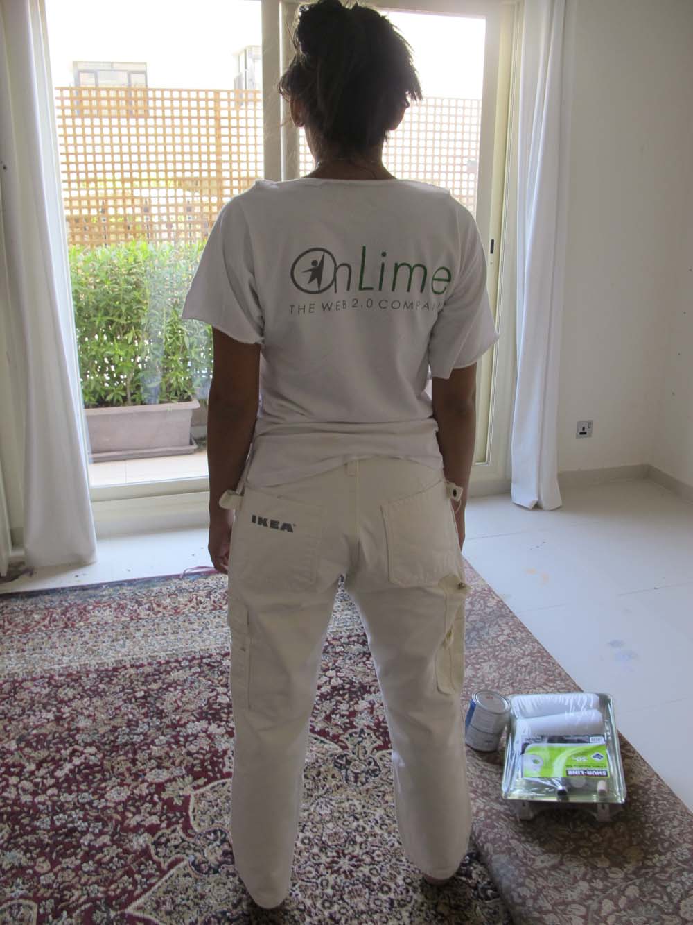 Today I started an ambitious project to get this section of my studio/home clutter-free. Because my workplace is more a home where I work than a studio I live in, I don’t like looking at this wall. So I solicited my sister Yasmine, who works at IKEA and has a good eye for interior detail. Oh, and she also happens to have a university degree in Interior Design. So the first thing on our ‘to do’ list was to paint the wall. I got her to do all the dirty bits while I splish-sploshed the wall in Thai Gold. What are little sisters for?
