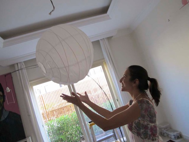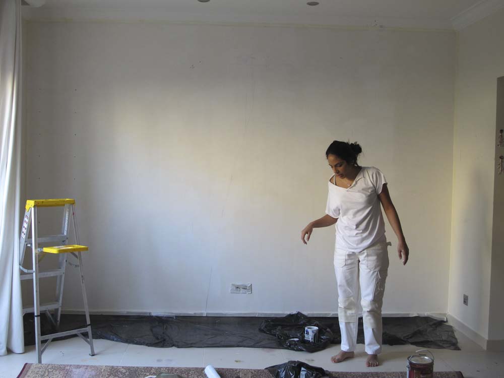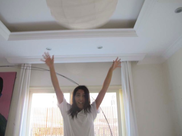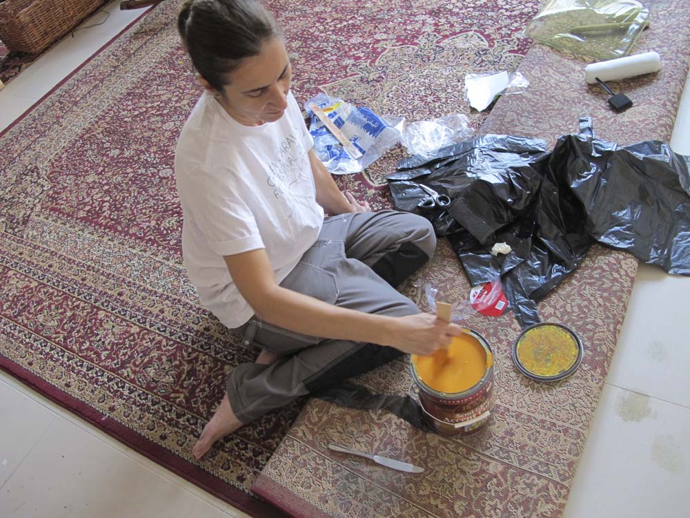 there i was busy applying the first coat (three in all, excluding the primer) while yasmine fooled around...