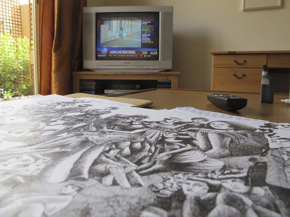 eyes on the news. i love that many of the different lines in these drawings remind me of stories; what I was watching at the time or a conversation I was having with a friend. because usually i'm occupying my mind with something other than the drawing itself