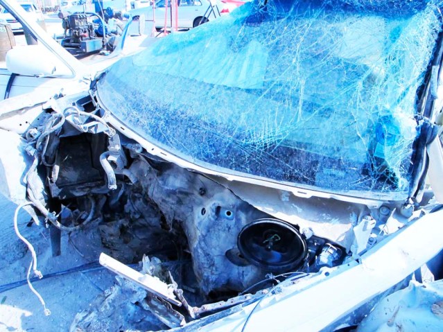 Yesterday, I took these photos of a terrible car wreck. I debated with myself whether these are considered ‘art’ or not. I did post them on Facebook. But am I being lewd and exploitative by posting them here (or there, for that matter!)? I may be sick, but I find great beauty in this wreckage. It’s not cool that it happened, and it’s not cool that most likely the person who was driving this is dead. But if I remove that from the final result- the wreck and these photos-is it possible to filter out the tragedy and be left with a painful reminder in the form of an onsite installation? People were actually driving to what’s left of this Lincoln Town Car to take photos. Many of these people were with their uniformed kids (this is where I park to pick up my children after school) who had brought along cameras (the crash is three days old today). I saw at least three dads come through with their children, commenting on the wreckage, shaking their heads and tut-tutting. Would they have gone to an art gallery to see this specimen of modern day ruins? Or is it up to the artist to dub this a work of art, take it to its next evolutionary stage? I don’t know. I just feel strongly that I have to hope I’m forgiven by whoever it was in this car for posting these photos.
