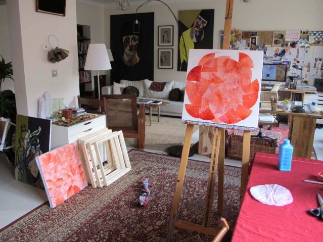 i love the size of these 50cm by 50cm canvases: easy to stretch, easy to move around the studio and so much fun to experiment with