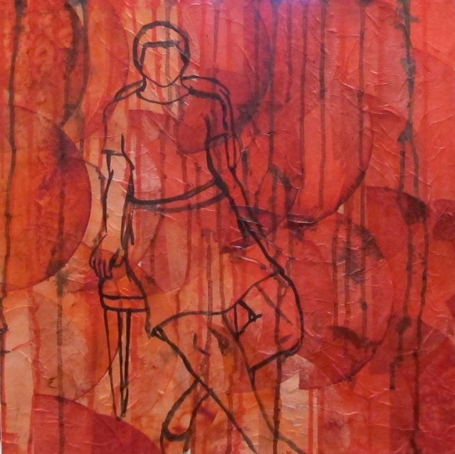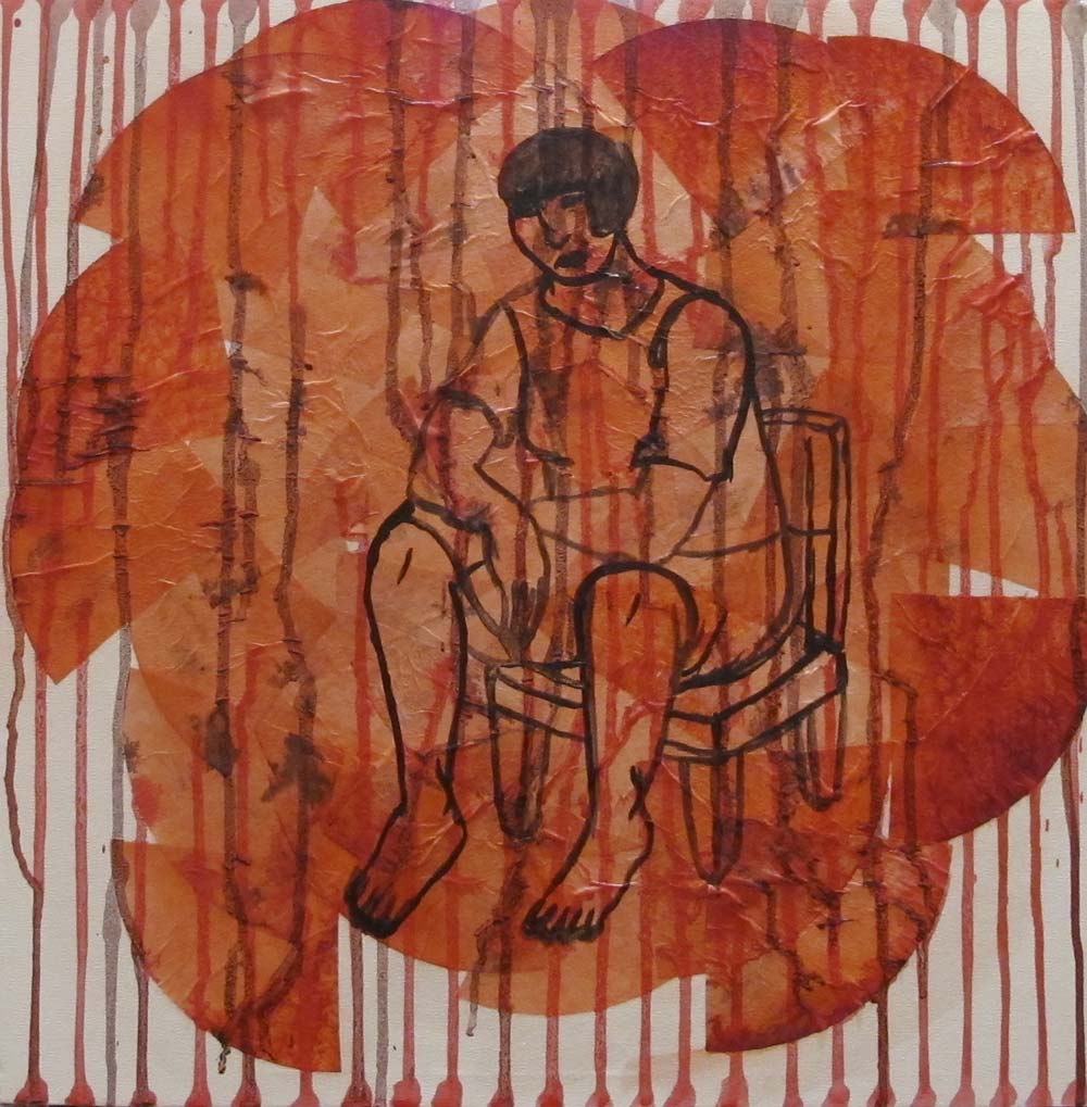 I started a new series titled Paintings About Sitting today. I really, really enjoyed doing these, from dying the coffee filters with food coloring to cutting and deco-patching the pieces onto the canvas and finally adding in my sitting ladies. Fun, fun, fun!