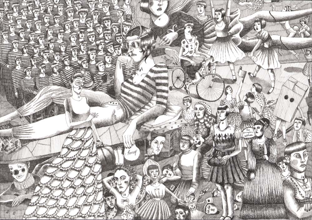 • Thank you. I draw it straight on with ink. It’s a stream of thought, so drawing it in pencil first takes all the spontaneity away. There’s not much room for mistakes because my lines follow a very certain and slow path.