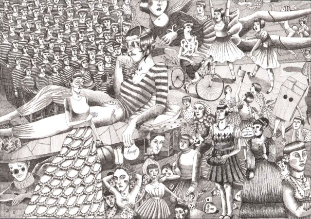 1. I admired this drawing the first time I looked at it, but it adds to the experience to see the construction of its parts laid out in time slices. Do you do any drawing in graphite beforehand? It would take courage to do such a complex drawing entirely and directly in ink.