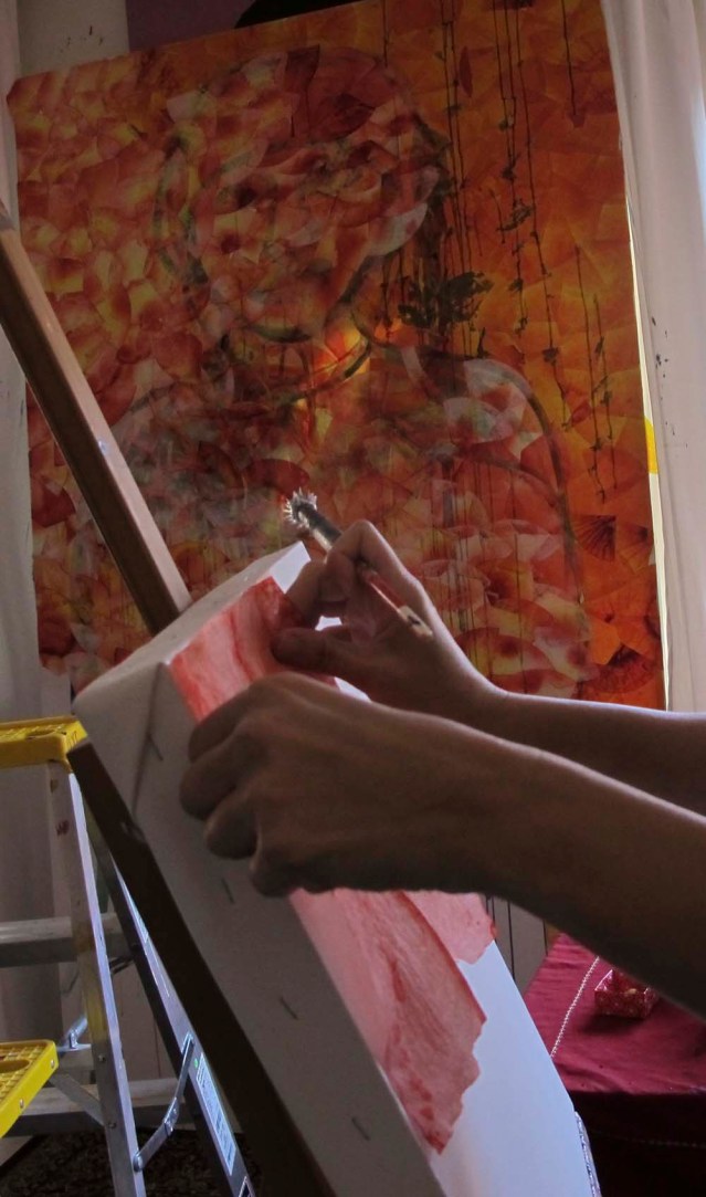 i try to convince myself that stretching these canvases is therapeutic. it's not.