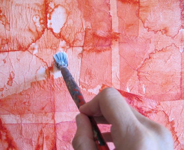 dyed napkins are not the easiest materials to decopatch. their being two-ply doesn't help matters either