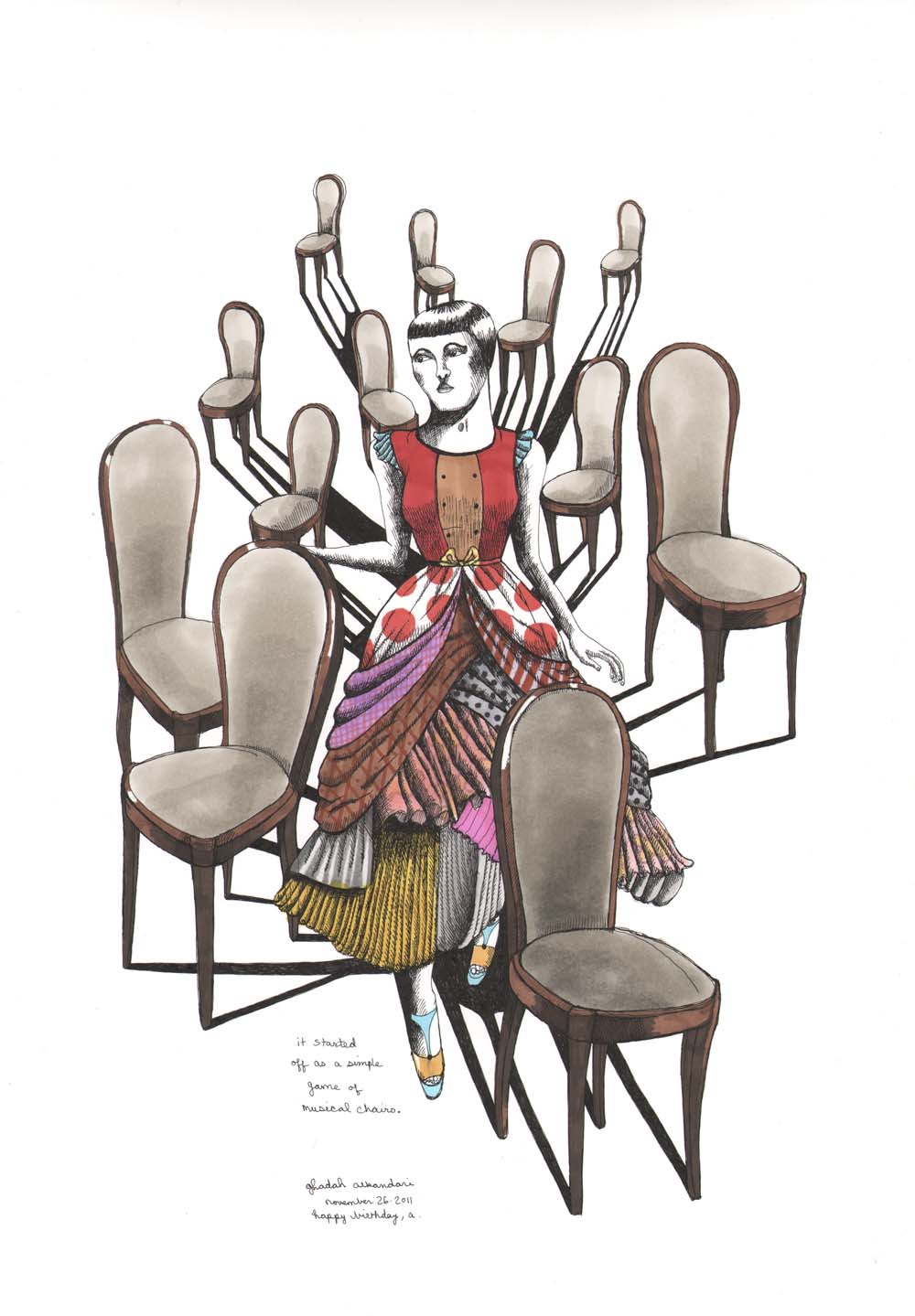 musical chairs, 2011, ink and markers on paper, 30 x 40cm