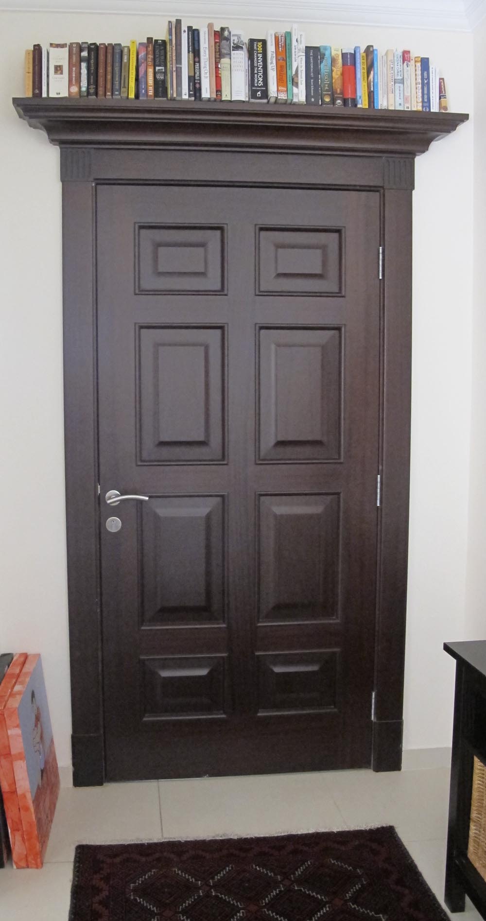 Well, certainly not above the door! Low shelves perhaps, until she’s a few years older. I don’t have that many books, and still found it so hard to organize them. In the end I split them into adult and children, and after I did it according to size. I would love to have enough books, however, to not only line at least one wall but have stacks of them all over. I want them to be accessible without worrying about putting them back in neatly. I want to be buried and bathed and baptized in books. *sigh*