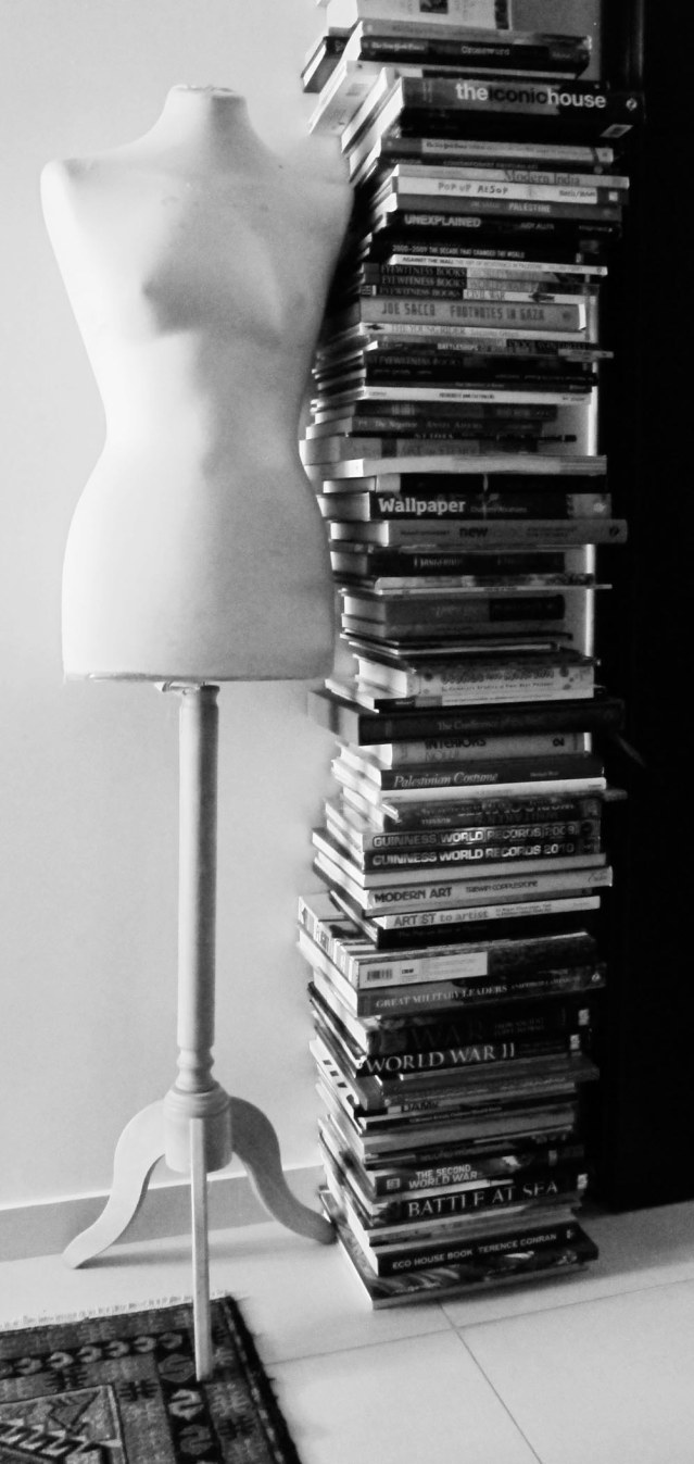 I didn’t want to simply reorganize my bookshelves without giving my books their deserved share of fun. So this morning I indulged in a bit of book-play (happily to say, there were just a couple of topples and a few simple injuries to my feet).