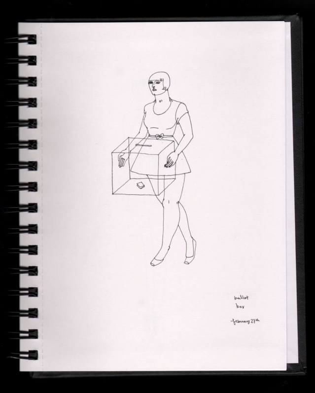 Category: Sketchbook, Third Spiral Sketchbook Tags: ballot, dress, menu, sketch, spiral, vote