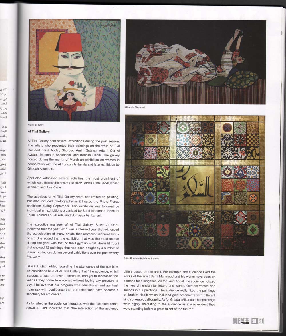 my painting 'eve takes a profile pic' was included in an article about gallery tilal. it's one of several pieces throughout issues #036 and #037 featuring kuwait's leading art galleries. this is a page from issue #036