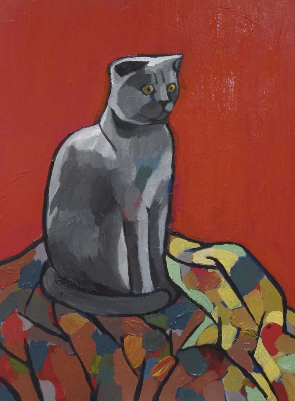 nabooly: painting of a sculpture of a cat, 2012, acrylic on canvas, 80 x 100 cm. i finished both paintings yesterday and the figure of the cat in this one is very different than the one i had finished earlier. so it just looked like i had created a sculpture of nabooly but as a painting. does that make sense?