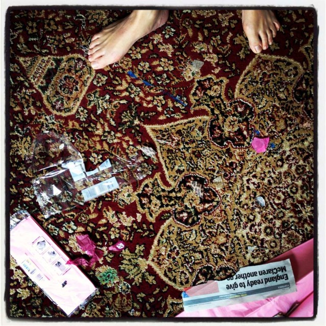 my feet and scraps. because i've become terribly addicted to sharing every second of every aspect of my life, and because i didn't want to give away too much, i started instagramming photos like this