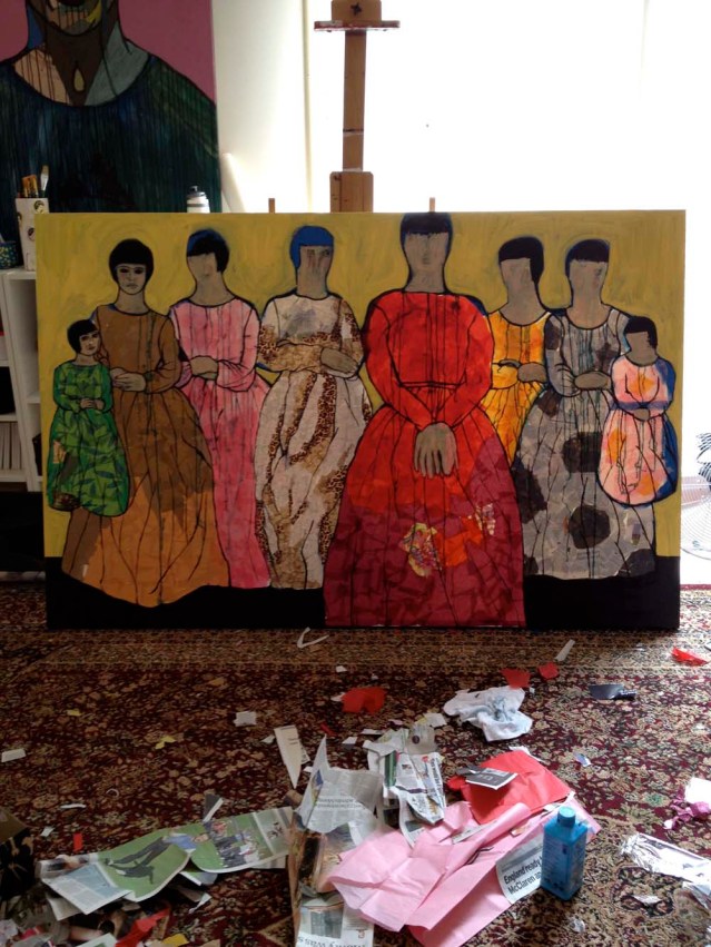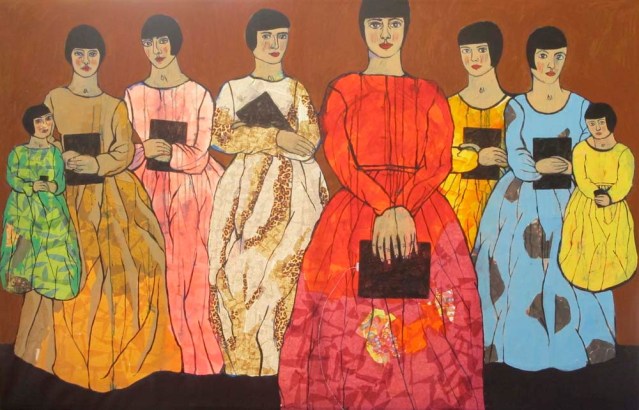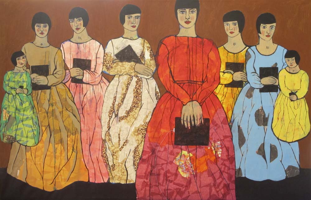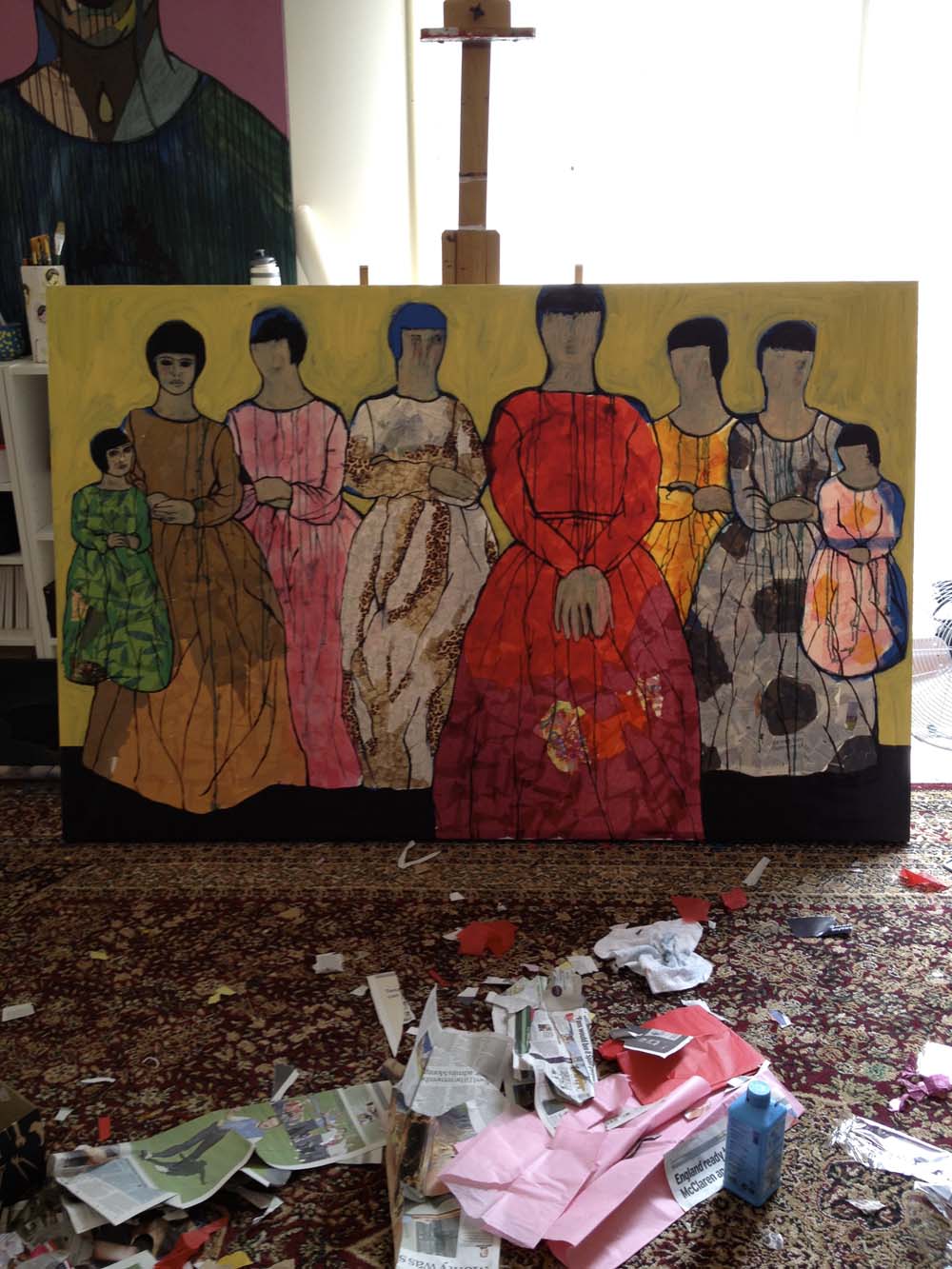 ladies, 2012, collage and acrylic on canvas, 130cm x 200cm