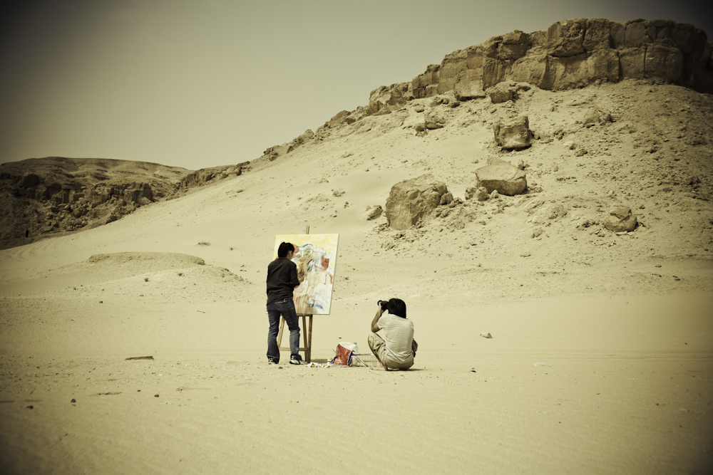 nawaf alali filming me paint. what's missing from these pictures is the heat. we were there during the hottest hours of the day
