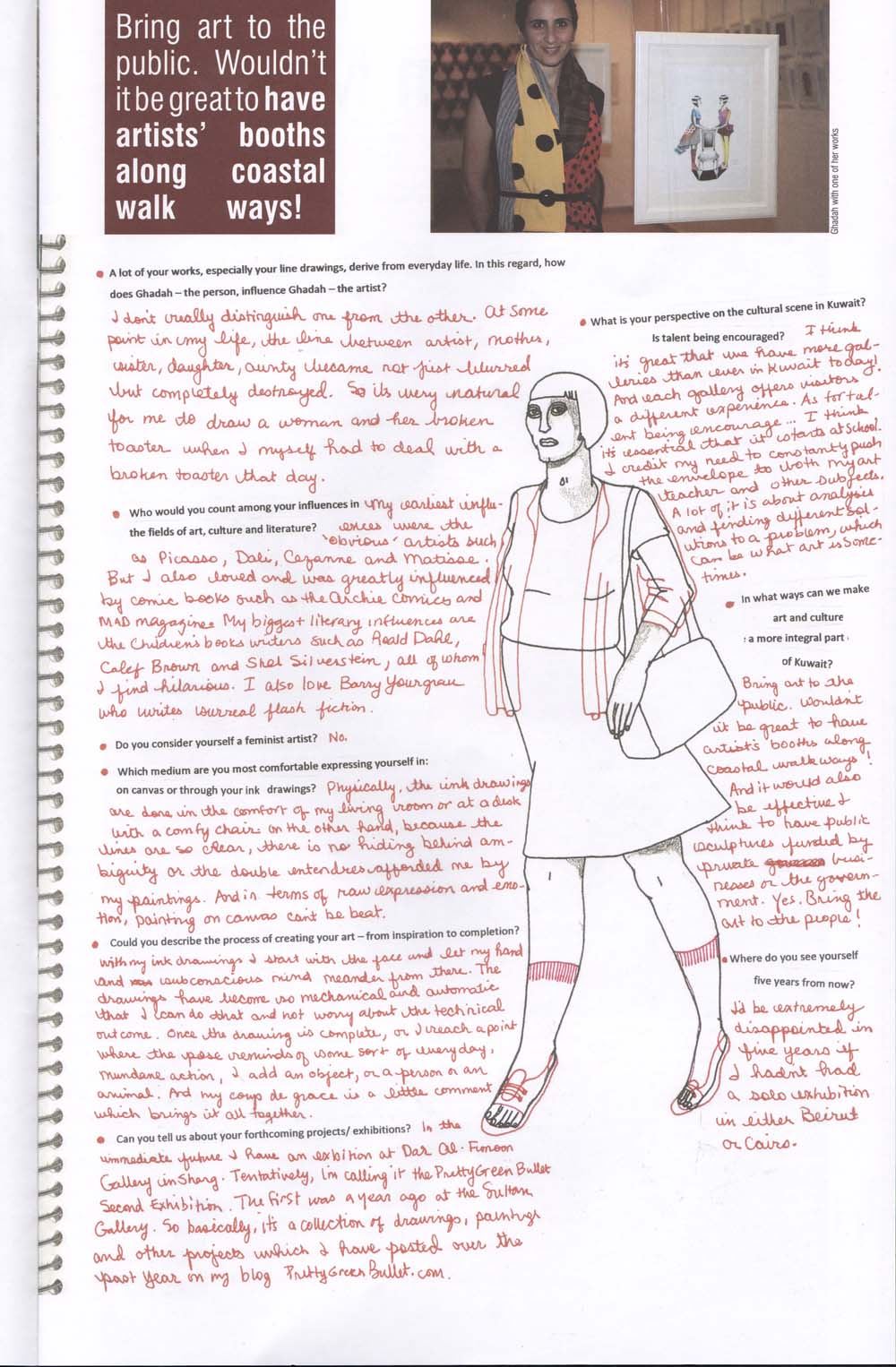 1. The format works really well. I like what you say about the process of creating your drawings and the coup de grace you deliver, and the smashing of the line between your personas. Congratulations!