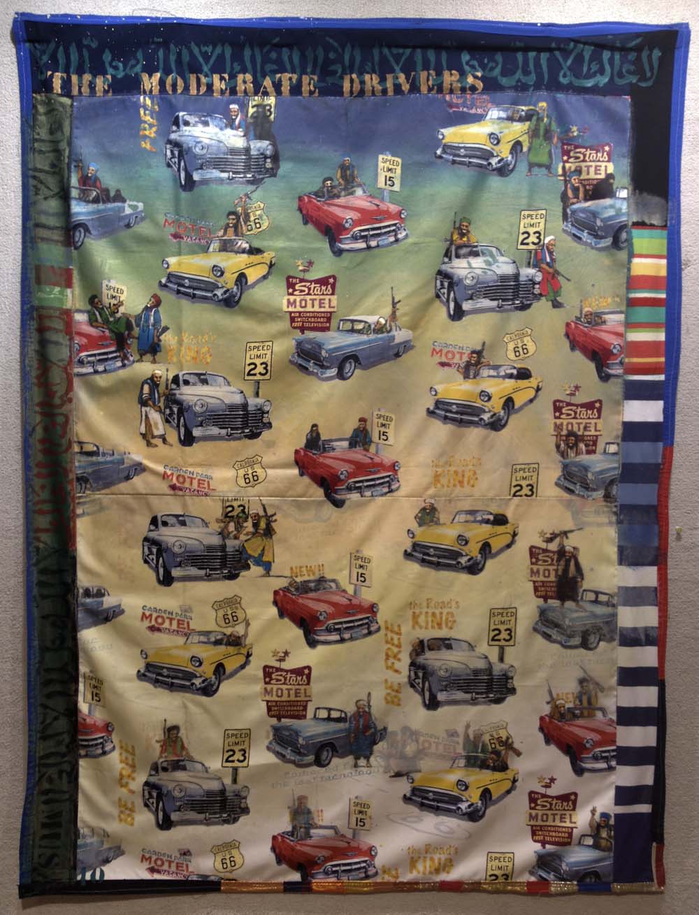 ‘the modern drivers’, a tongue-in-cheek tapestry by sudanese artist hassan musa